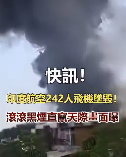 快訊/印度航空242人飛機墜毀!滾滾黑煙直竄天際畫面曝