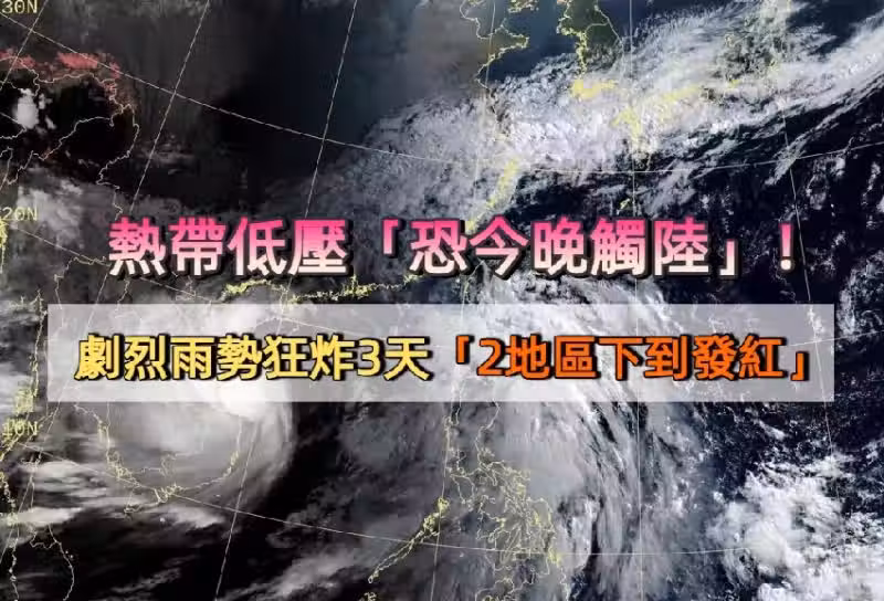 熱帶低壓「恐今晚觸陸」!劇烈雨勢狂炸3天「2地區下到發紅」