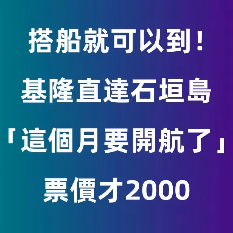 根據《TVBS新聞網》報導,台日交通又有重大突破!基隆至石垣島的定期渡輪航線即將在今年9月啟航,由全新成立的「商船やいま」公司營運,票價出奇親民,單程僅需台幣2千元左右,比現行飛機票便宜四倍有餘。