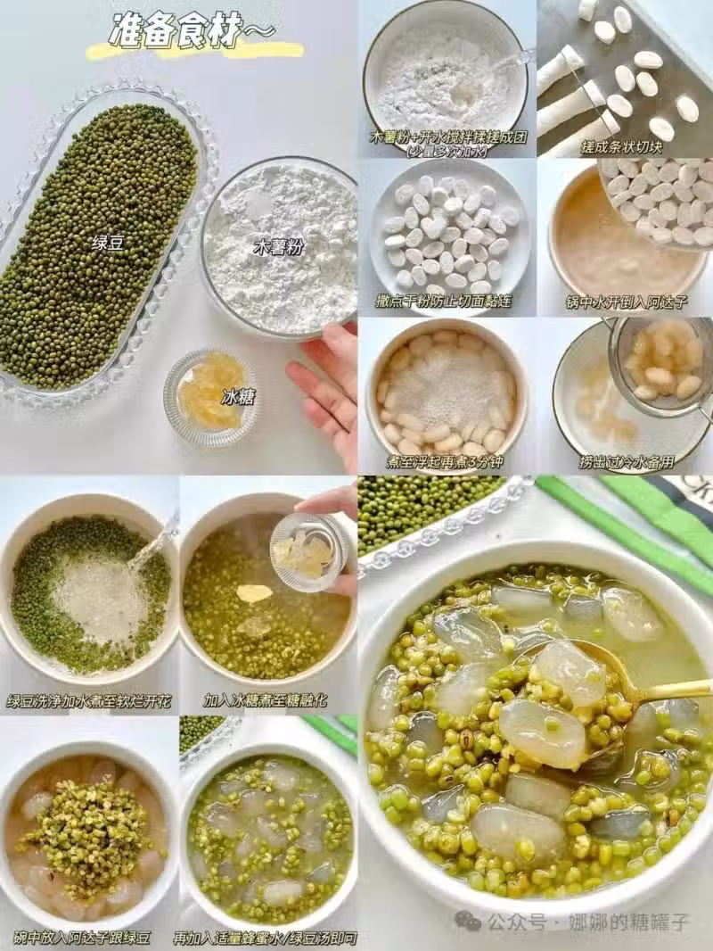 2.煮綠豆:還是按照前面的方法,把綠豆煮至軟爛,加入冰糖煮化。