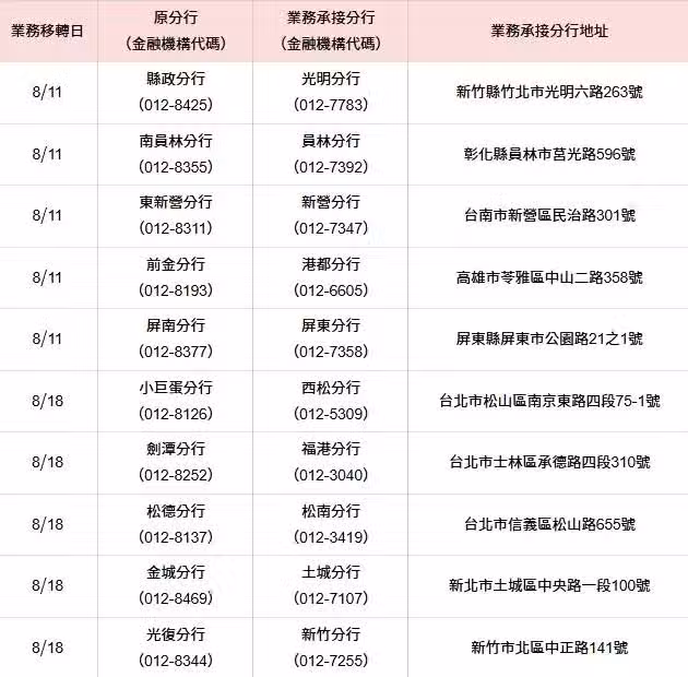 今年上半年已有內科園區等10家分行完成搬遷,加上此次暫停營業的10家分行,累計共有20個據點進行調整。