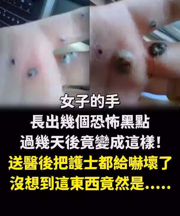 女子的手長出幾個恐怖黑點,過幾天後竟變成這樣!送醫後把護士都給嚇壞了,沒想到這東西竟然是.......