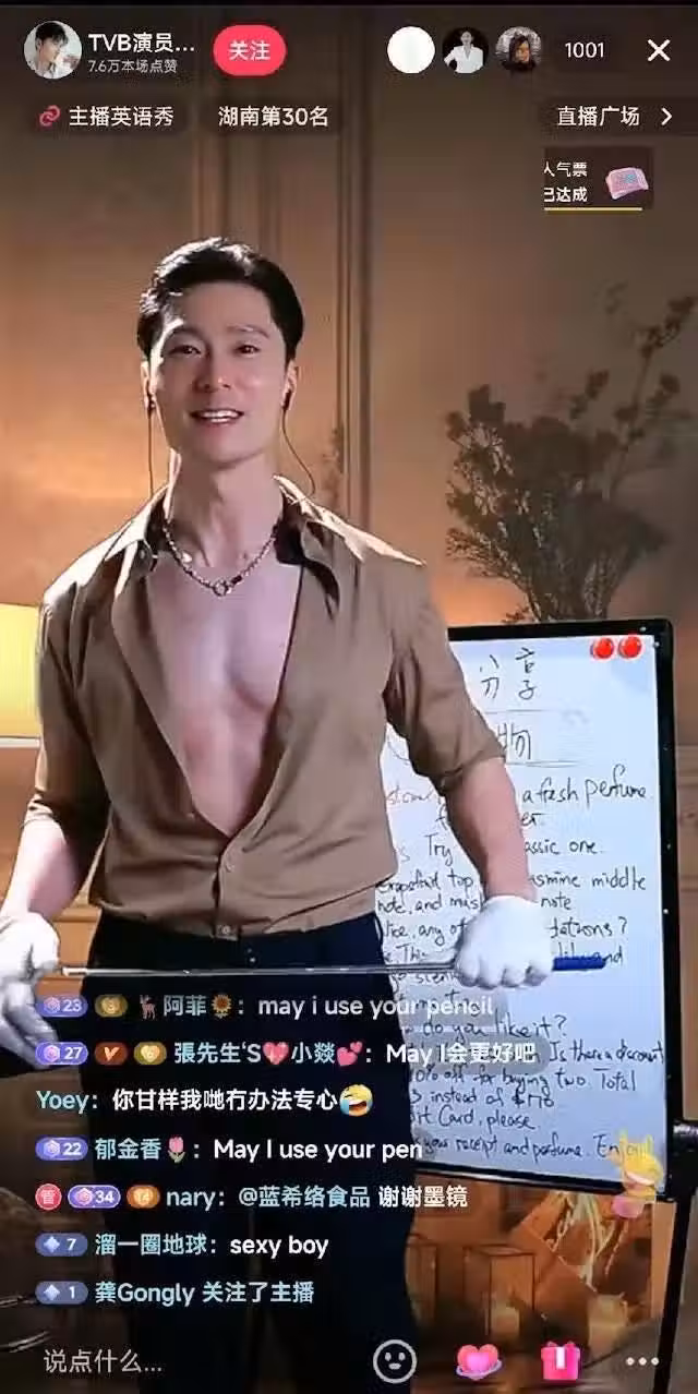 TVB藝人內地擺攤賣咖啡,不舍演員夢,直播教英語露胸肌人氣爆漲
