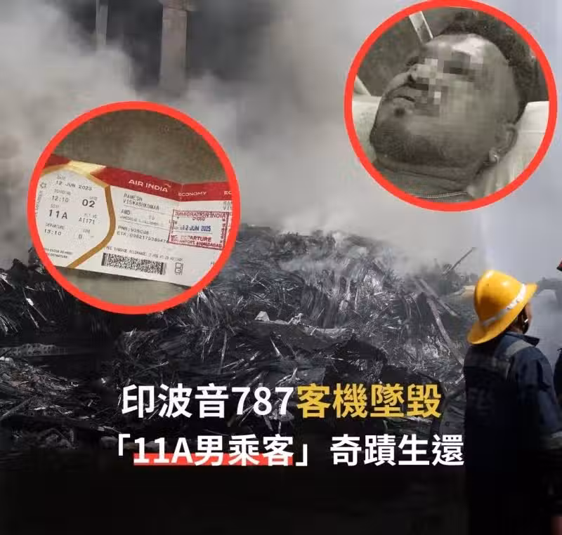 在這場震驚全球的印度航空空難中,機上242人僅有11A座的乘客,印英雙重國籍乘客拉梅什奇蹟般地倖存下來。