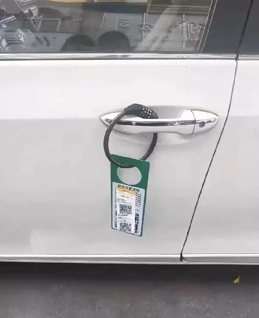 近日,廣東一位車主的遭遇在網絡上引發了廣泛討論,他的愛車因欠繳停車費被一把機械密碼鎖鎖住了門把手。