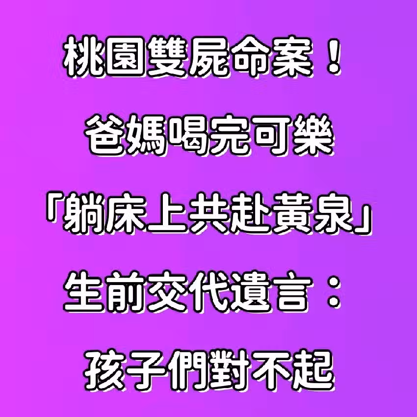 桃園雙屍命案!爸媽喝完可樂「躺床上共赴黃泉」...生前交代遺言:孩子們對不起