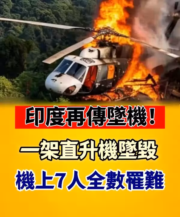 快訊/印度再傳墜機!一架直升機墜毀,機上7人全數罹難