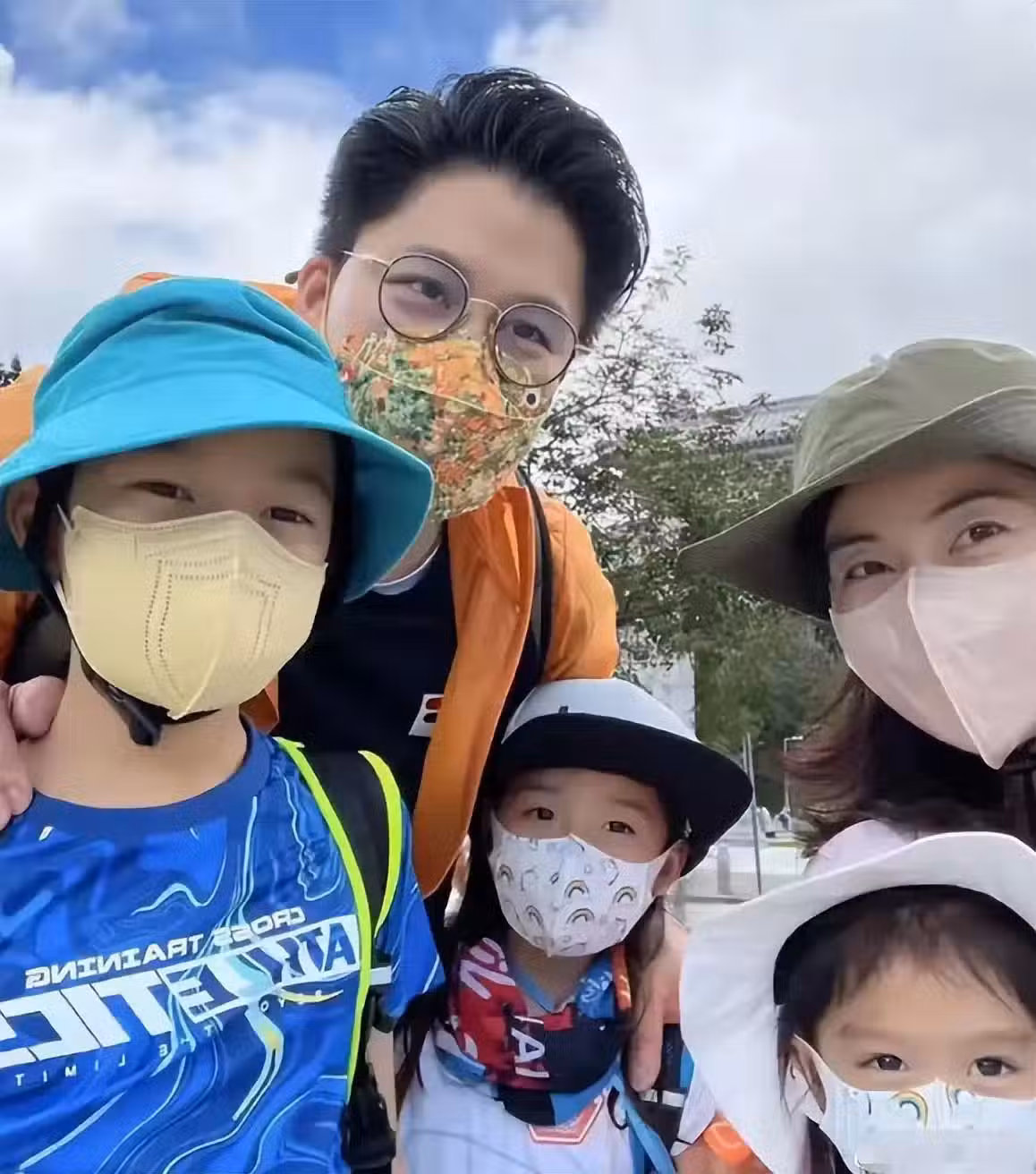 郭晶晶一家五口步行逛街,小女兒穿著鮮艷長發如瀑,顏值超越媽媽