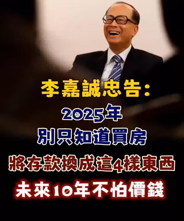 李嘉誠忠告: 2025年別只知道買房, 將存款換成這4樣東西, 未來10年不怕價錢