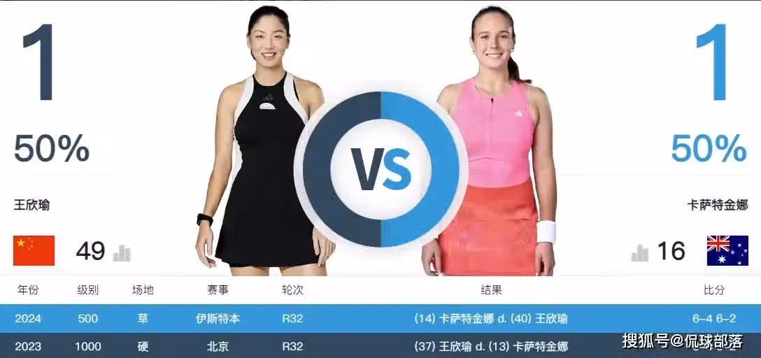 據統計,王欣瑜跟卡薩金娜有過2次碰面,各勝一場,不過唯一一次草地對決,則是卡薩金娜獲勝,就是去年的伊斯特本站。