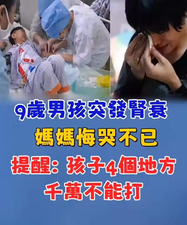 9歲男孩突發腎衰,媽媽悔哭不已,提醒: 孩子4個地方千萬不能打