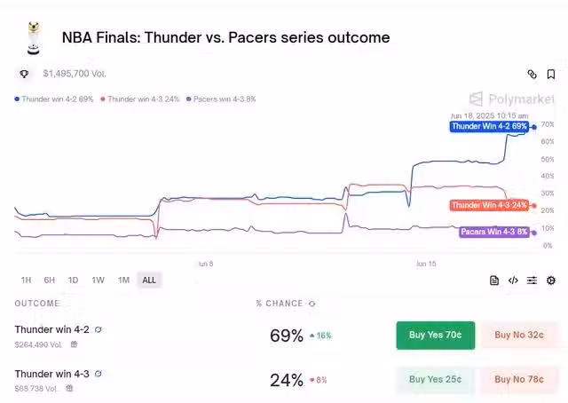 不過溜馬的確是命懸一線了,根據Polymark的預測,雷霆奪冠機率已經高達93%,溜馬逆襲機率只有7%,現在溜馬需要有奇蹟發生。