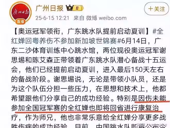 無緣冠軍一周,全紅嬋凌晨發文暴露真實現況,父親的擔心應驗了