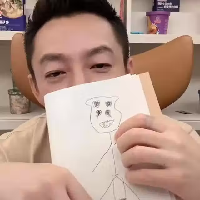 原以為小玥兒畫得足夠抽象了,但是弟弟的作品更是「四不像」。