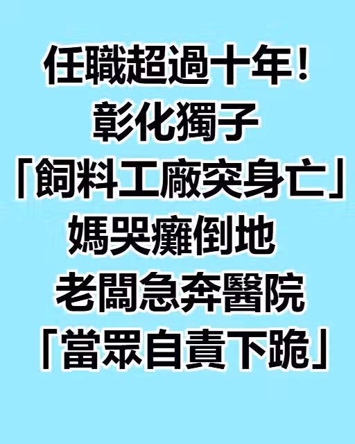 任職超過十年!彰化獨子「飼料工廠突身亡」媽哭癱倒地 老闆急奔醫院「當眾自責下跪」