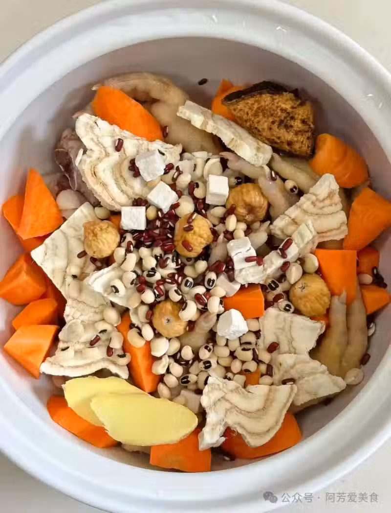 順手買了半斤雞腳、一把眉豆和赤小豆,再搭兩塊陳皮——既然天氣悶得讓人提不起勁,不如燉鍋湯暖暖身子。