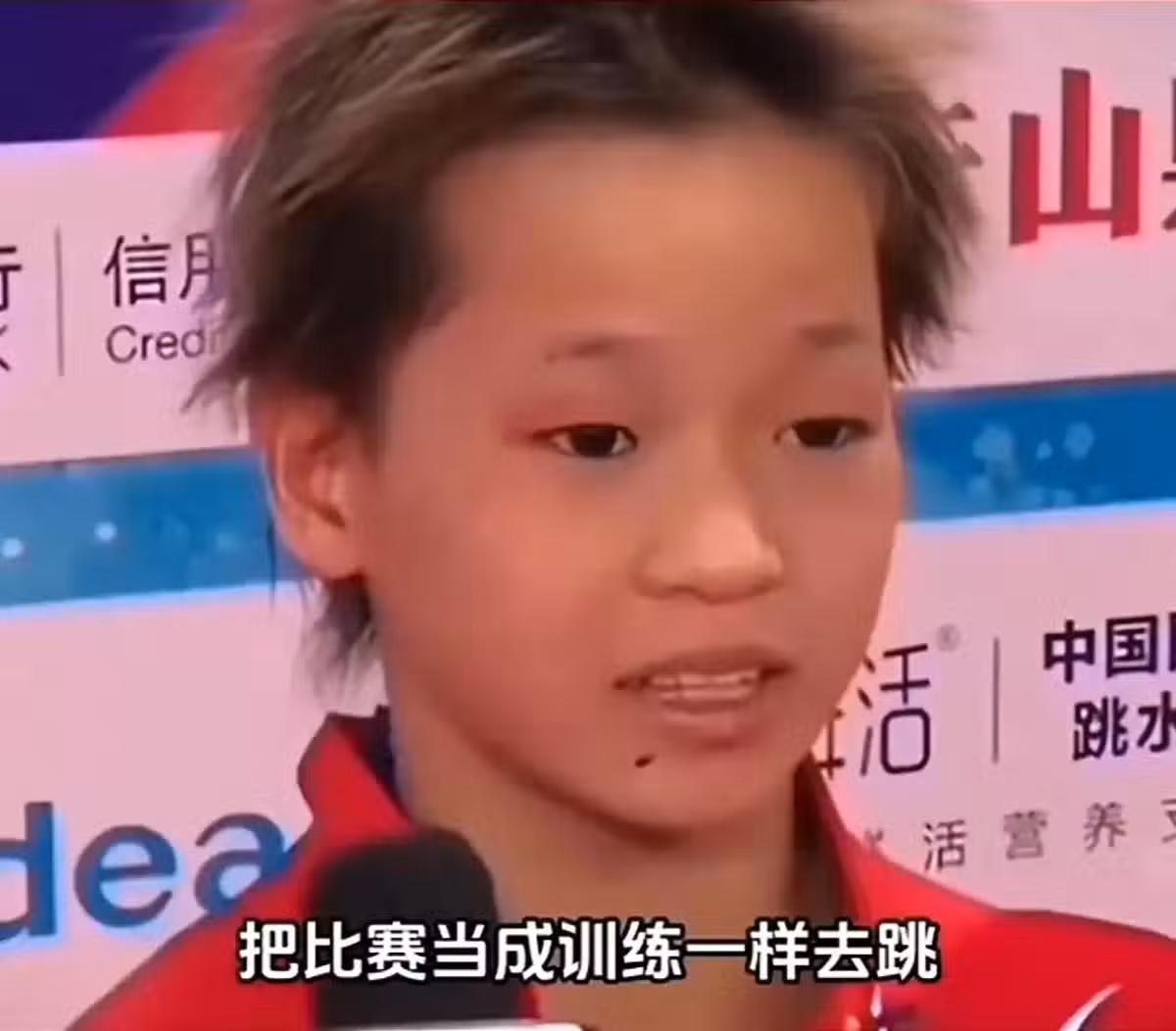 全紅嬋的一句「教練講了把比賽當成訓練一樣去跳,放心大膽的跳」讓年僅13歲的全紅嬋第一次獲得全國跳水比賽的冠軍,當時的全紅嬋說話還奶聲奶氣的,讓所有人都沒想到的是就這個「黃毛丫頭」即將用「水花消失術」驚艷世界。