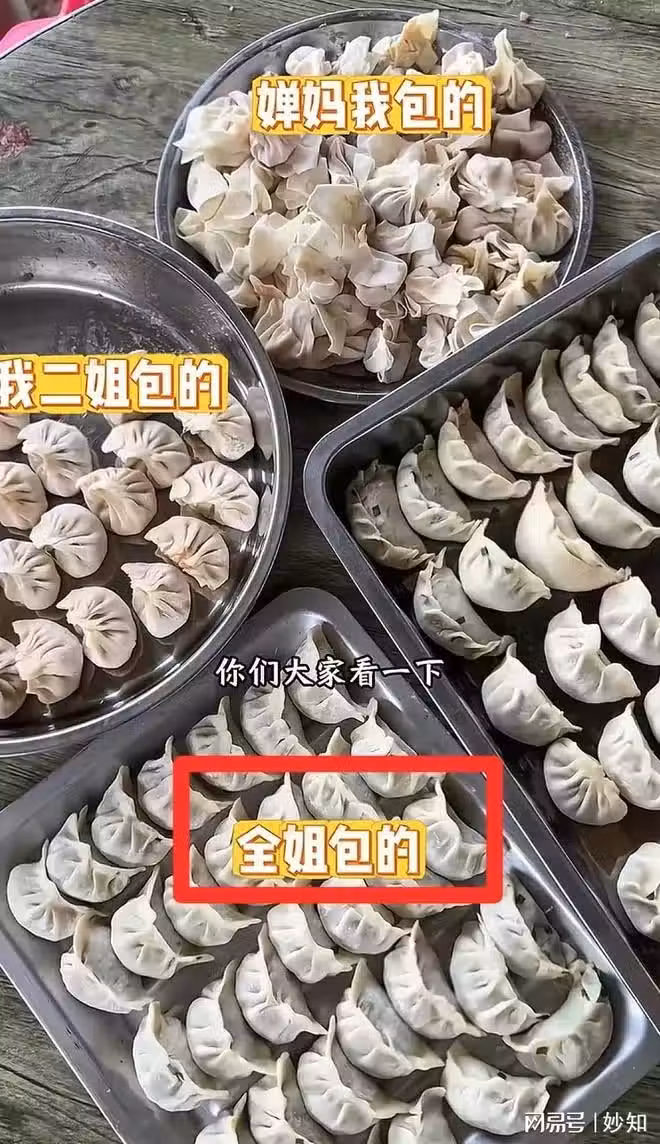 全紅嬋一家包餃子,全爸發抖音其中寫「全姐包的」,網友紛紛猜測