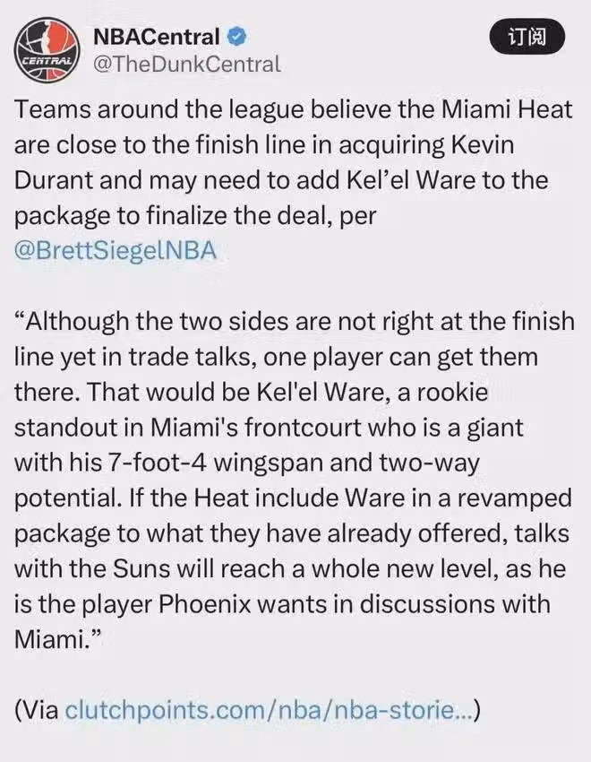 有一說一,單論個人選擇而言,若只能在火箭與熱火之間做出選擇,杜蘭特勢必更想把天賦帶到休斯頓,不僅因為那裡有熟知的教練,最主要是有著衝冠的希望,反觀如今的熱火(本賽季常規賽37勝45負,東部第10)連打進季後賽都費勁。