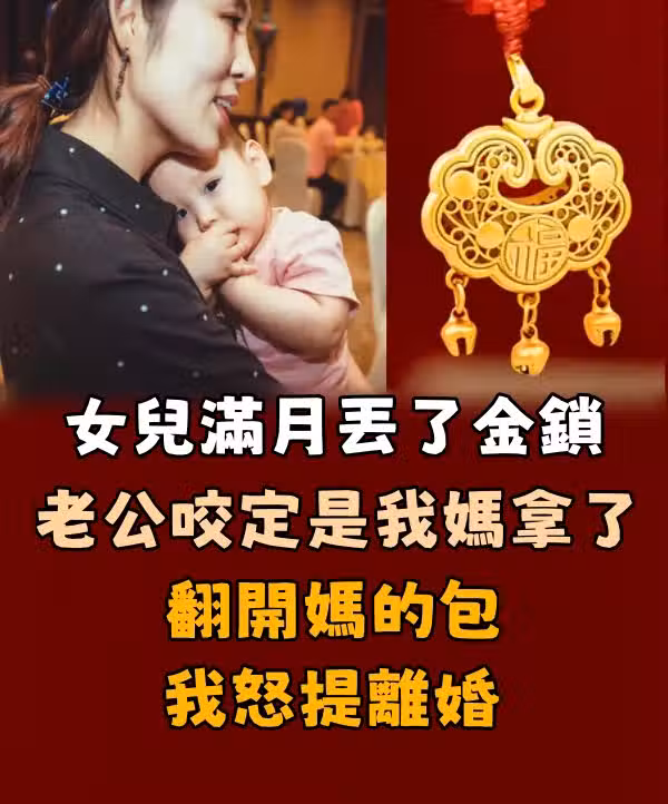 女兒滿月丟了金鎖,老公咬定是我媽拿了,翻開媽的包 我怒提離婚.