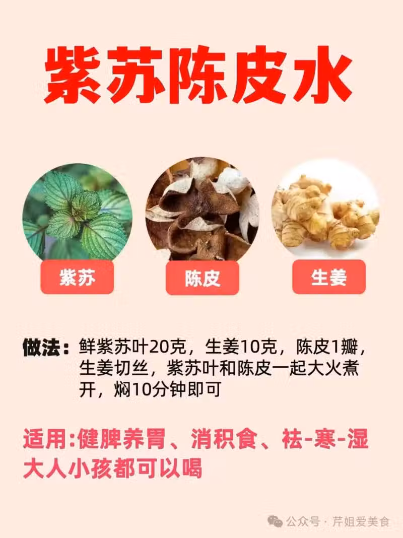 燥濕化痰:陳皮理氣化痰,紫蘇宣肺,適合痰濕咳嗽(痰多、色白黏稠)。