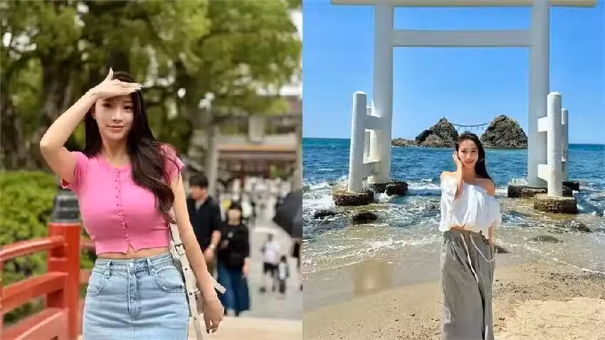 近日她在臉書上曬出多張旅日美照,地點選在福岡旅遊景點「櫻井夫婦岩」(櫻井二見ヶ浦的夫婦岩),她以一襲白色一字領上衣入鏡,露出香肩與鎖骨,與背景純白鳥居相互輝映,畫面唯美浪漫。
