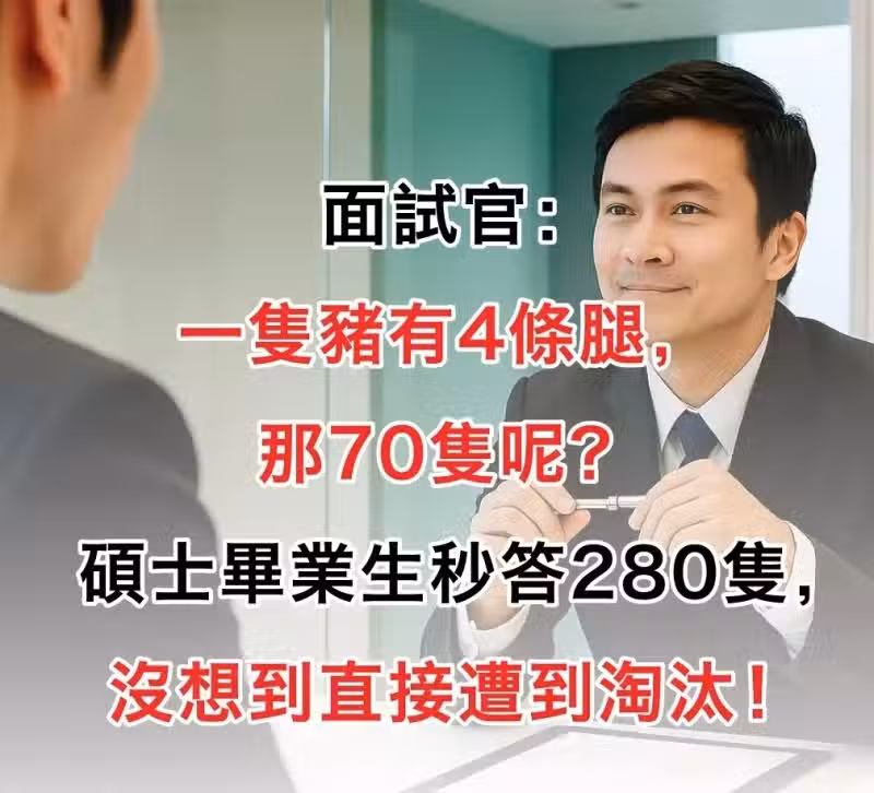 面試官:一隻豬有 4條腿,那 70隻呢? 碩士畢業生秒答 280隻,沒想到直接遭到淘汰!