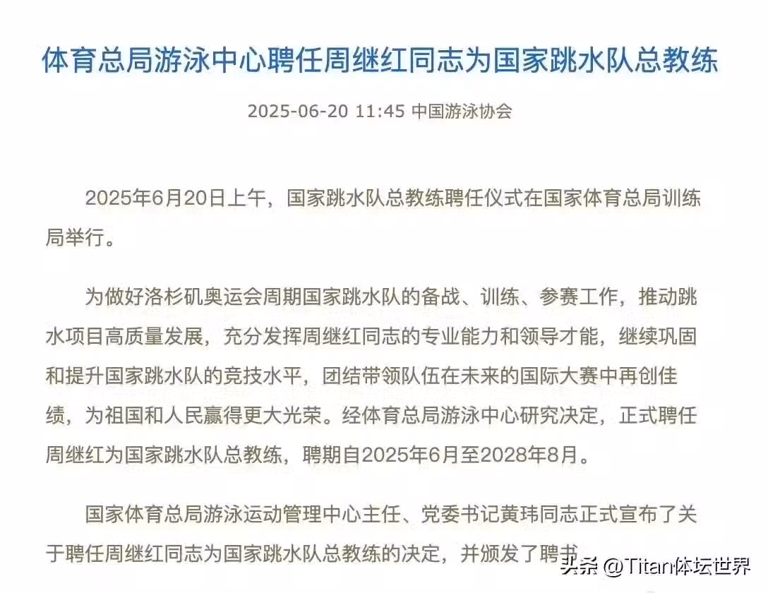60歲周繼紅再出山!獲得新職務,鐵腕備戰洛杉磯!泳迷關心全紅嬋的未來