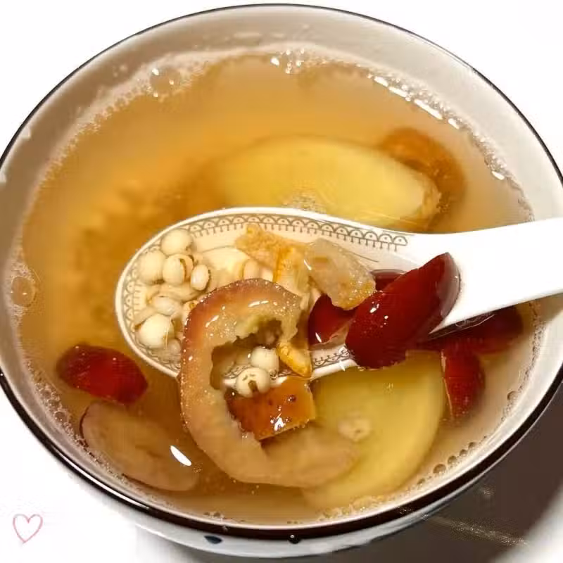 炒薏米祛濕不傷胃,薑片驅寒暖身,紅棗山楂調和氣血,陳皮化解黏膩。喝起來酸酸甜甜,還有棗香味~