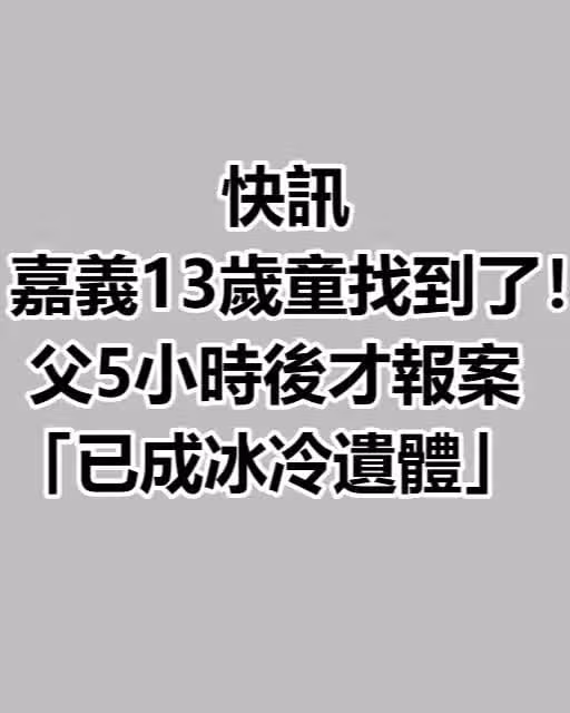 快訊/嘉義13歲童找到了!父5小時後才報案「已成冰冷遺體....」
