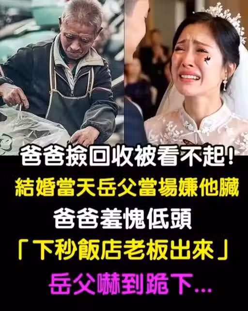 爸爸撿回收被看不起!結婚當天「岳父當場嫌他髒」爸爸羞愧低頭「下秒飯店老闆出來」岳父嚇到跪下...