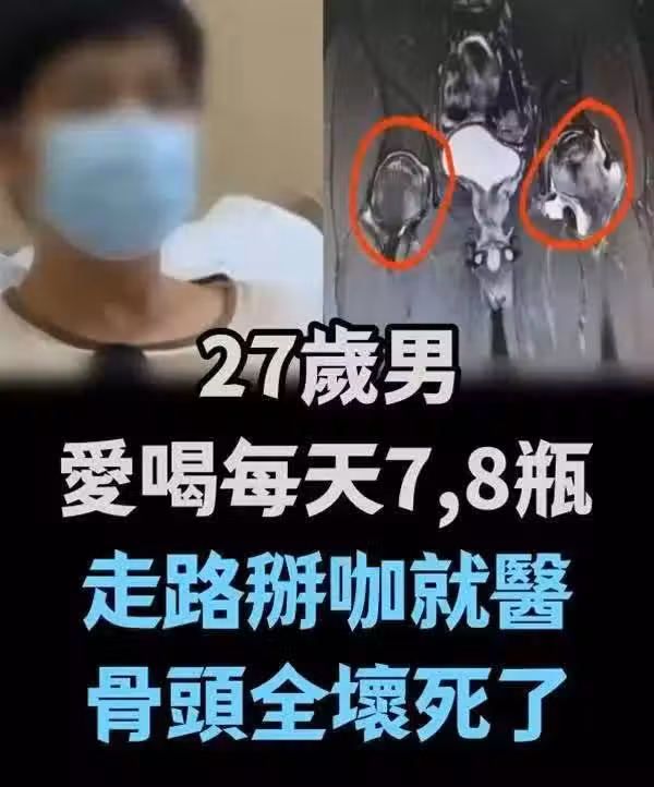 27歲男愛喝每天7、8瓶  走路掰咖就醫:骨頭全壞死了