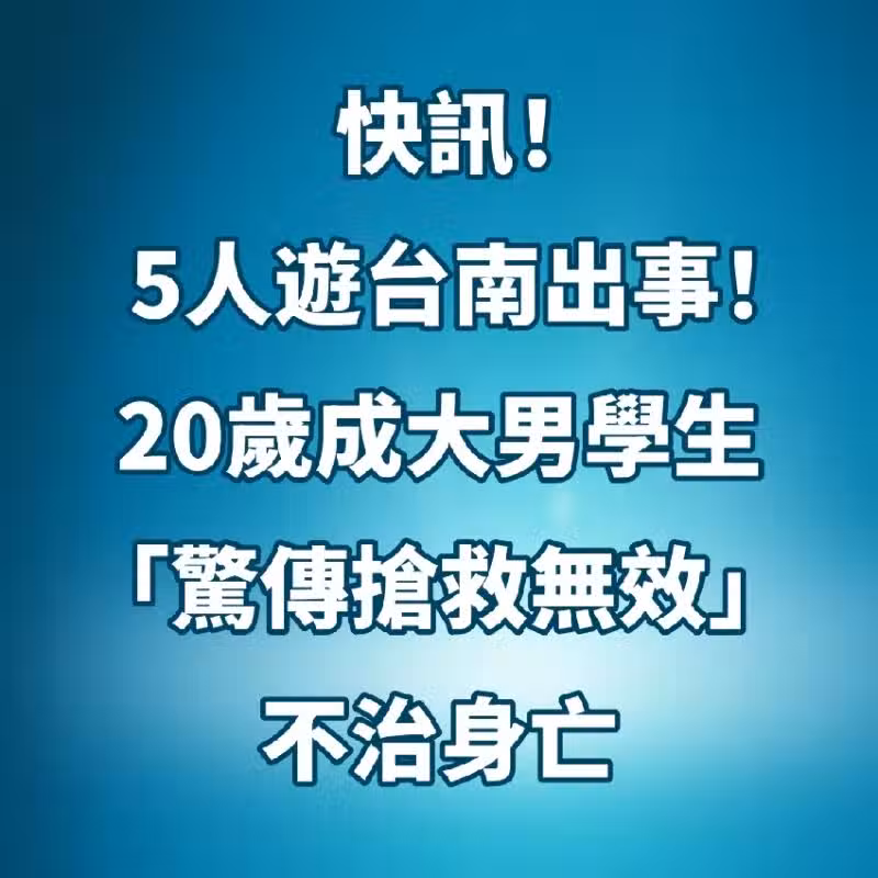 快訊/5人游台南出事!20歲成大男學生「驚傳搶救無效」不治身亡!