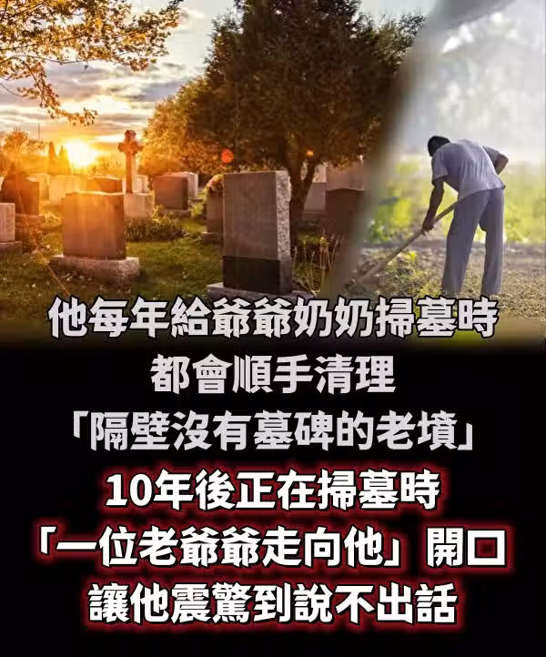 他每年給爺爺奶奶掃墓時,都會順手清理「隔壁沒有墓碑的老墳」10年後正在掃墓時「一位老爺爺走向他」開口讓他震驚到說不出話...