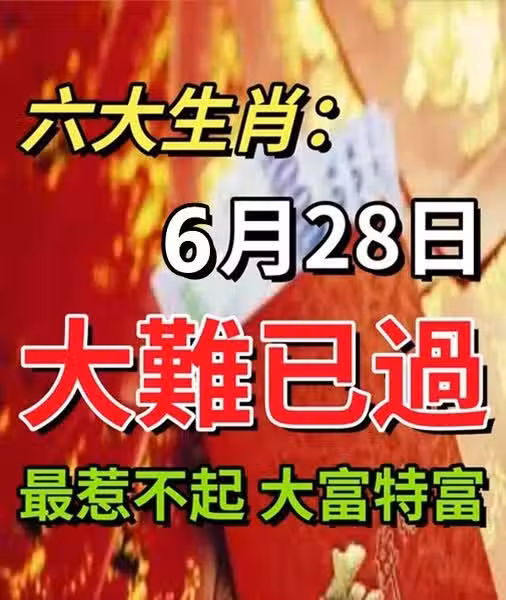六大生肖:6月28日大難已過(最惹不起)大富特富