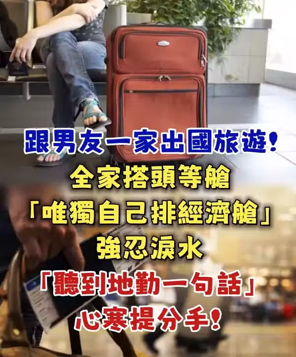 跟男友一家出國旅遊!全家搭頭等艙「唯獨自己排經濟艙」 強忍淚水「聽到地勤一句話」心寒提分手!!
