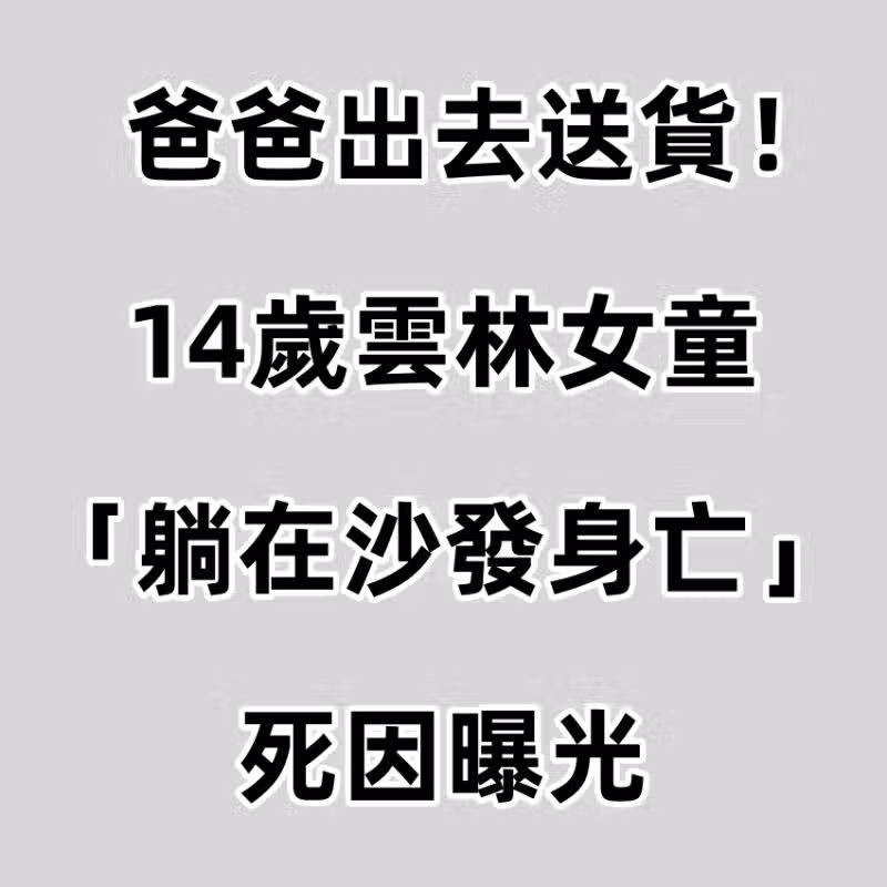 爸爸出去送貨!14歲雲林女童「躺在沙發身亡」死因曝光!
