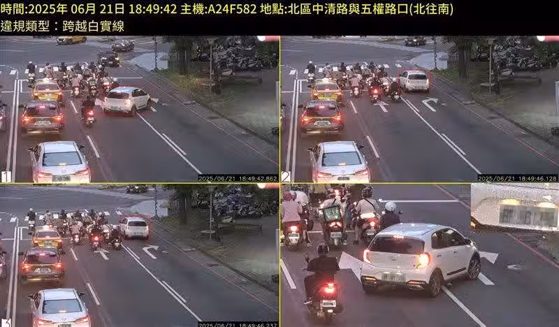 據統計,自2024年12月1日至2025年6月1日,4處路口累計舉發交通違規案件3萬5613件,其中「崇德路與太原路口」違規件數最多,共1萬8057件。其次則是「中清路與五權路口」,共1萬7109件。主要違規項目包括跨越雙白線、直行車占用左轉車道以及右轉未依規定行駛等。
