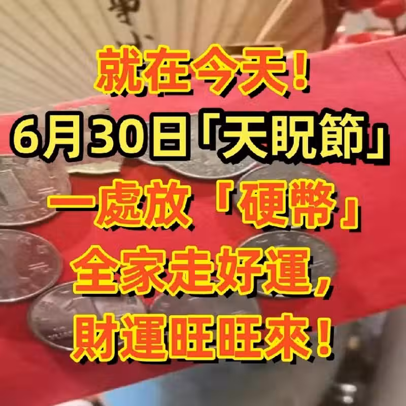 就在6/30日!「天眖節」一處放「硬幣」全家走好運,財運旺旺來!