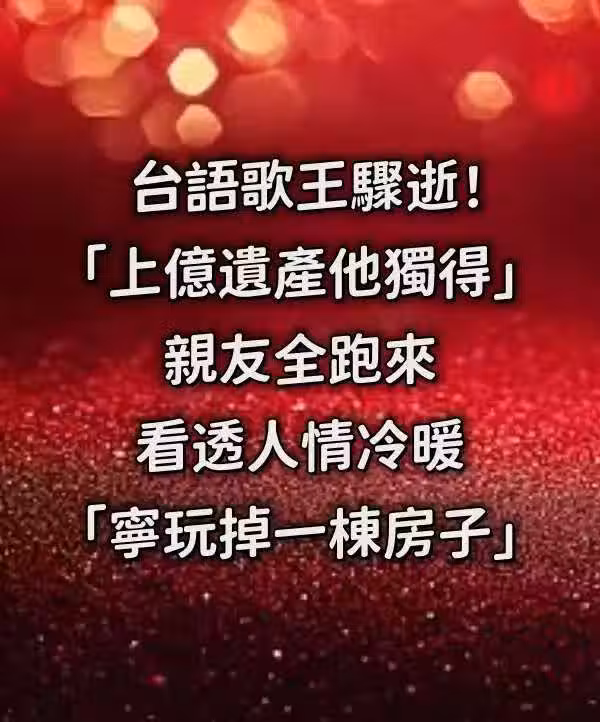 台語歌王驟逝!「上億遺產他獨得」親友全跑來 看透人情冷暖「寧玩掉一棟房子...」