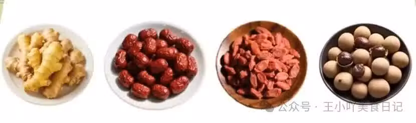 做法:桂圓與姜棗同煮,最後加枸杞,可加紅糖調味
