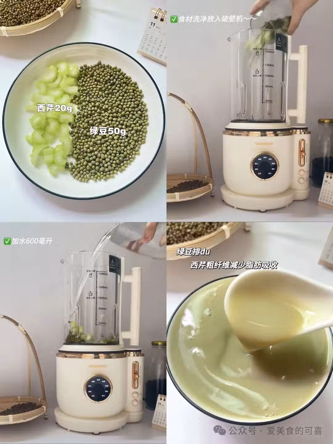 1️⃣綠豆提前洗好,浸泡好,西芹清洗乾淨,切成小段備用!