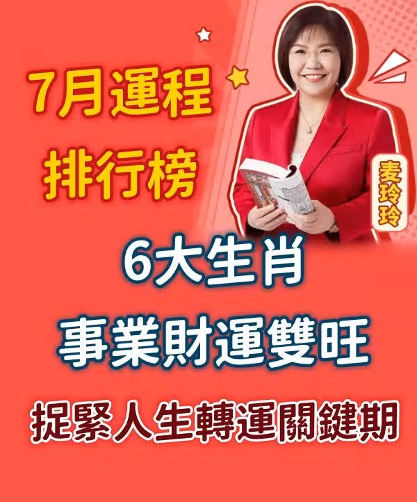 7月運程排行榜「6大生肖事業財運雙旺」捉緊人生轉運關鍵期