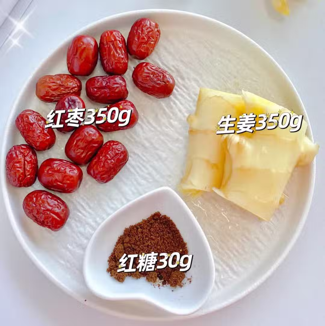 嫩薑350克 ➕ 紅棗350克 ➕ 紅糖30克