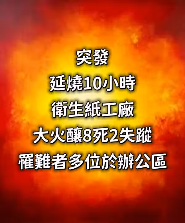 突發/延燒10小時 衛生紙工廠大火釀8死2失蹤 罹難者多位於辦公區