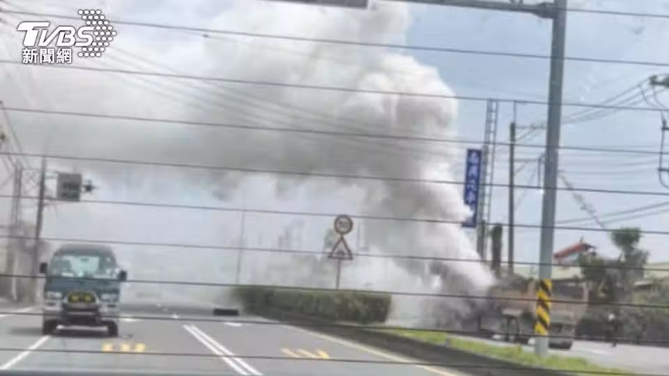 除了高雄的「人樹合一」事件外,屏東則發生一起驚險事故。一輛砂石車在行駛途中突然起火,火勢就在加油站附近發生,情況十分危急。加油站員工發現後立即拿出滅火器協助滅火。據了解,砂石車行駛到一半因不明原因自燃,所幸沒有波及其他人車,也沒有造成人員傷亡。至於詳細的起火原因還有待進一步調查釐清。