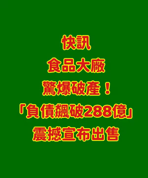 快訊/食品大廠驚爆破產!「負債飆破288億」震撼宣布出售