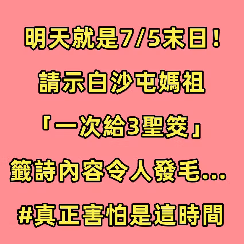 明天就是7/5末日!請示白沙屯媽祖「一次給3聖筊」籤詩內容令人發毛... #真正害怕是這時間