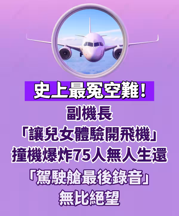 史上最冤空難!副機長「讓兒女體驗開飛機」撞機爆炸 75人無人生還「駕駛艙最後錄音」無比絕望