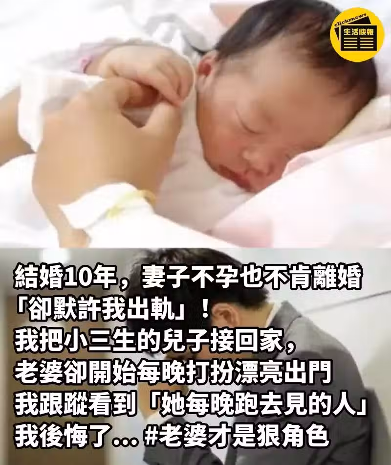 結婚10年,妻子不孕也不肯離婚「卻默許我出軌」! 我把小三生的兒子接回家,老婆卻開始「每晚打扮漂亮出門」,我跟蹤看到「她每晚跑去見的人」我後悔了... #老婆才是狠角色